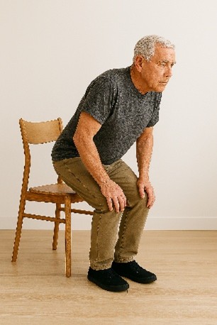 • Posicionamiento de los pies y ángulo de las rodillas: Los pies deben estar bien apoyados en el suelo, con un calzado adecuado, situados ligeramente por detrás del punto de gravedad (un poco retrasados respecto a las rodillas) y separados a la anchura de las caderas para aumentar la base de sustentación durante el movimiento.